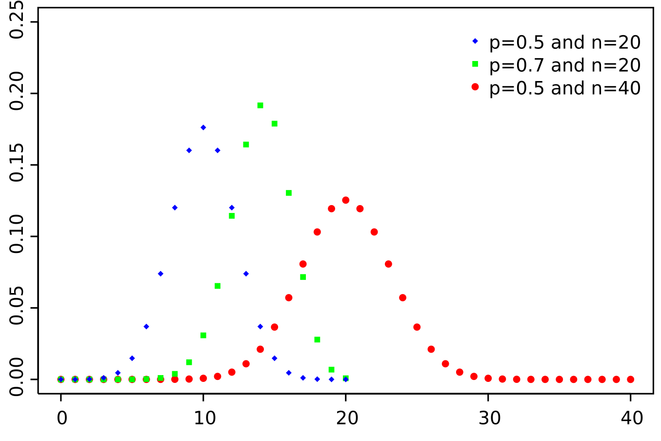 \[\begin{gathered} X:=\sum_{i=1}^{n}{Z_{i}},\quad Z_{i}\overset{\mathrm{i.i.d}}{\sim}\mathrm{Bernoulli}(\pi)\\ \Downarrow\\ X\sim\mathrm{Binomial}(n,\pi) \end{gathered}\]- $n$: 베르누이 시행 횟수