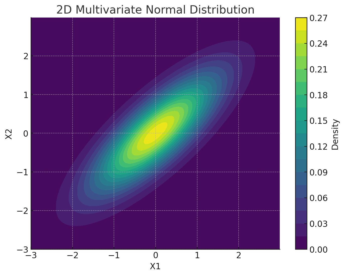 \[\begin{aligned} \mathbf{x} \sim \mathcal{N}_{P}\left(\mu, \Sigma\right) \end{aligned}\]Multi-VariateNormal Distribution): 유한 차원의 상관된 가우시안 확률변수 벡터에 대하여 정의되는 가우시안 분포-