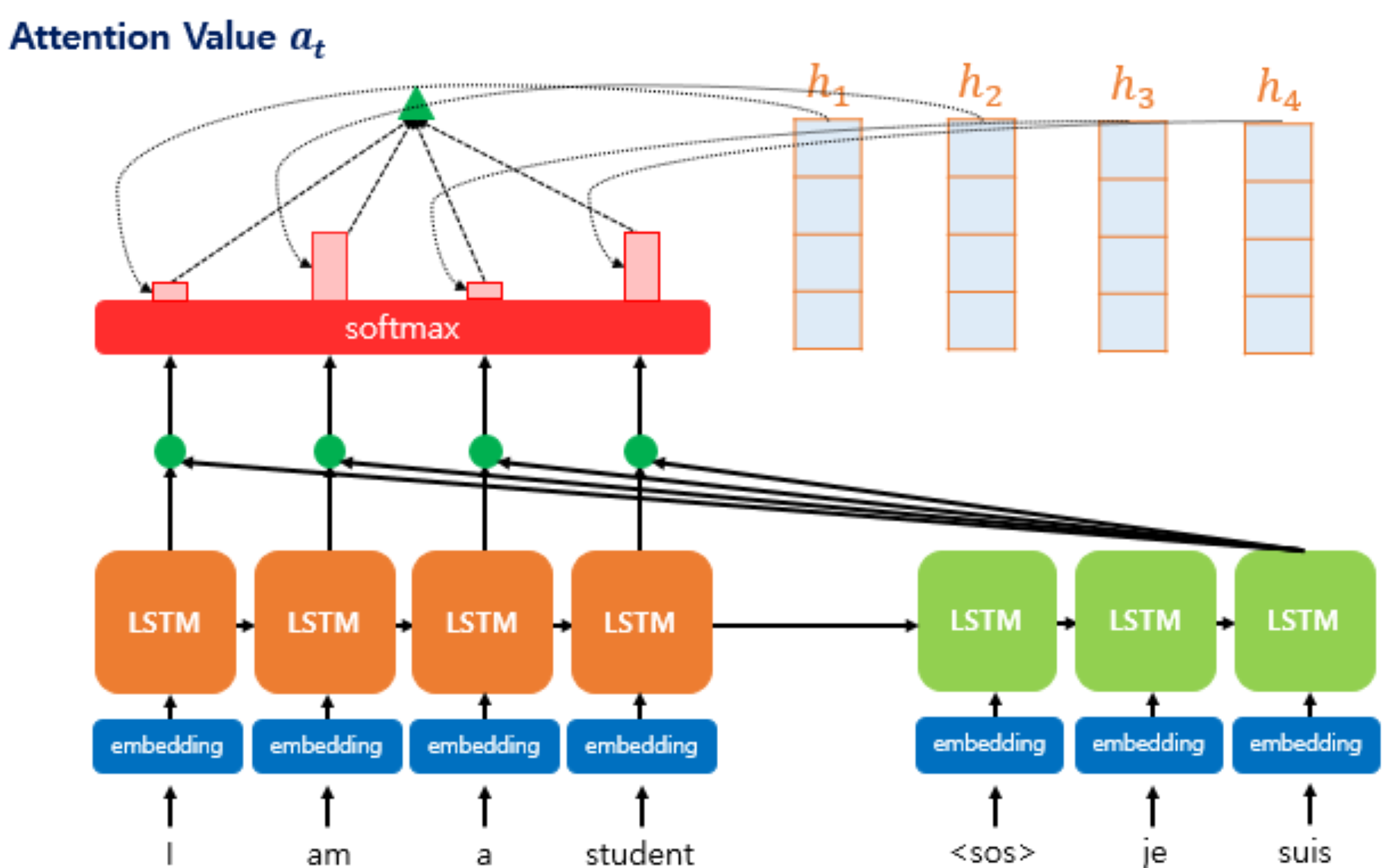 \[\sigma^{(t)} = \text{ATTN}\left(\eta_{t}, \mathbf{H}, \mathbf{H}\right)\]- \(\mathcal{Q} = \eta_{t}\) : 디코더의 $t$ 시점 은닉 상태