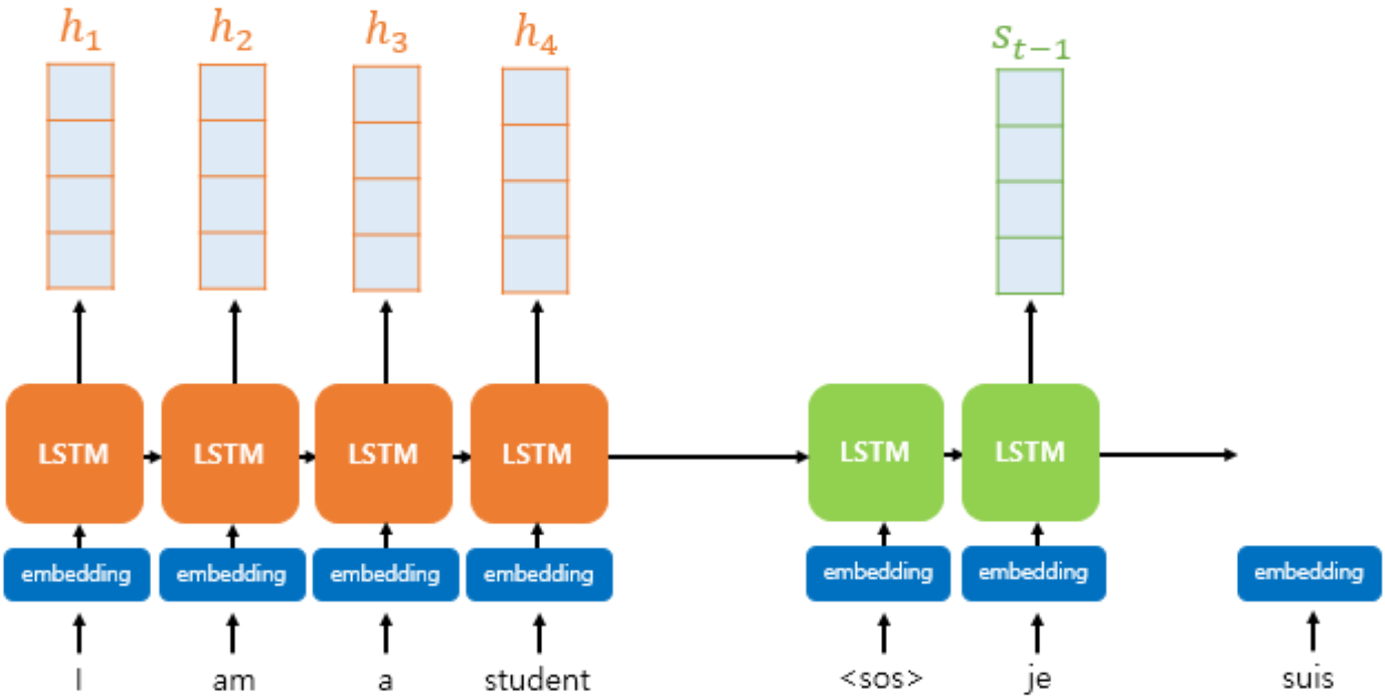 \[\sigma^{(t)} = \text{ATTN}\left(\eta_{t-1}, \mathbf{H}, \mathbf{H}\right)\]- \(\mathcal{Q} = \eta_{t-1}\) : 디코더의 $t-1$ 시점 은닉 상태