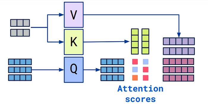 - 셀프 어텐션에서, 입력값과 반환할 값은 동일하나 역할($\mathcal{Q}, \mathcal{K}, \mathcal{V}$)에 따라 서로 다른 정보 처리를 수행해야 하는 경우