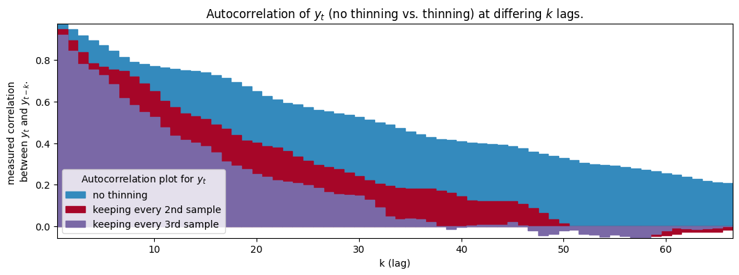 솎아내기(Thinning) : 매 $k$ 번째 표본을 선택함으로써 자기상관을 줄이는 방법