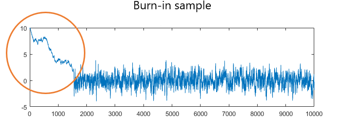 선행 구간(Burn-in Period) : 수렴 상태에 도달하기 전, 초기값 $x^{(t=0)}$ 의 영향력을 최소화하기 위해 일부 반복을 무시하는 구간