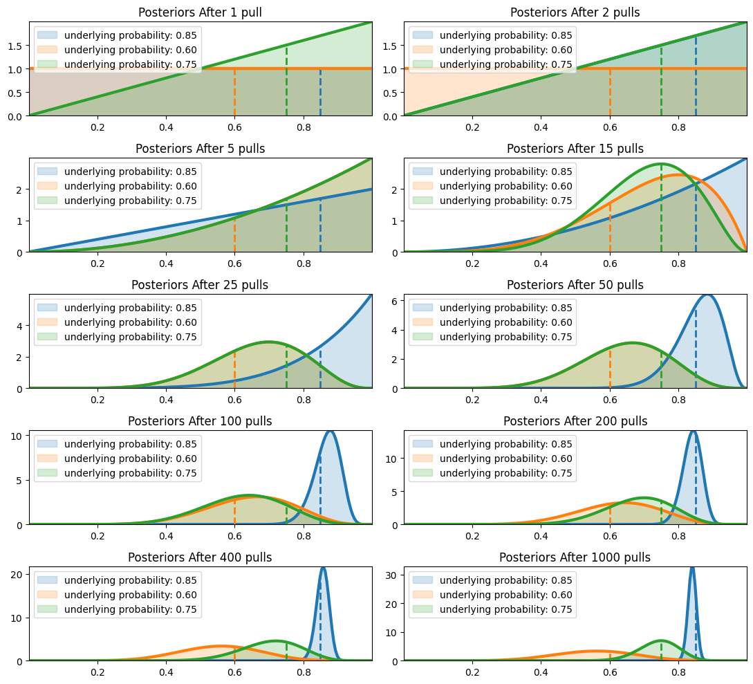 모든 슬롯 머신의 보상 확률에 대하여 사전 확률 분포 설정