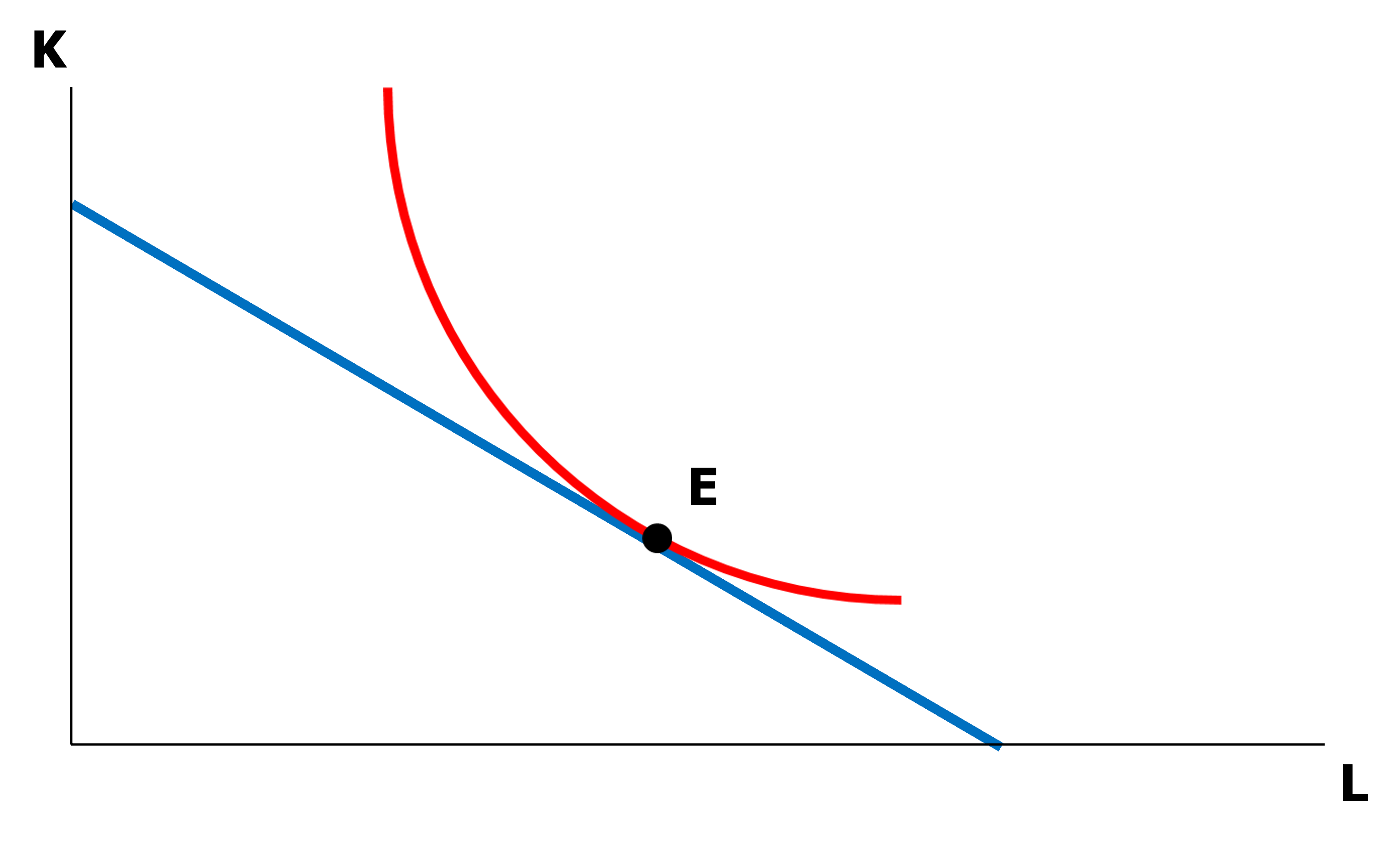 등비용곡선과 등량곡선의 접점 : 비용 제약 하 생산량을 극대화하는 요소조합