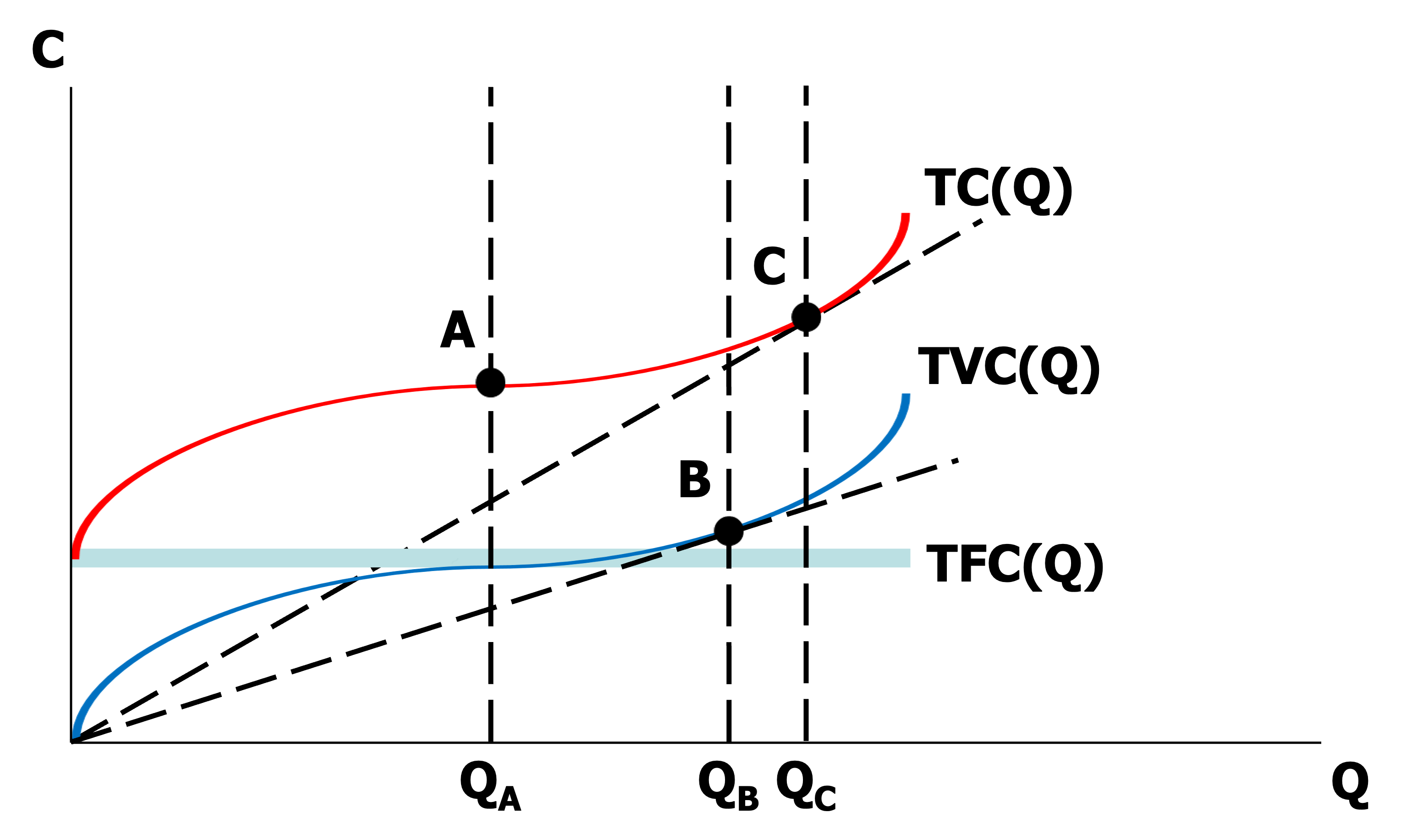 단기총비용(Short-Term Total Cost; STC) : 개별생산자가 재화를 총 $Q$ 단위 공급하기 위해 지불해야 하는 비용