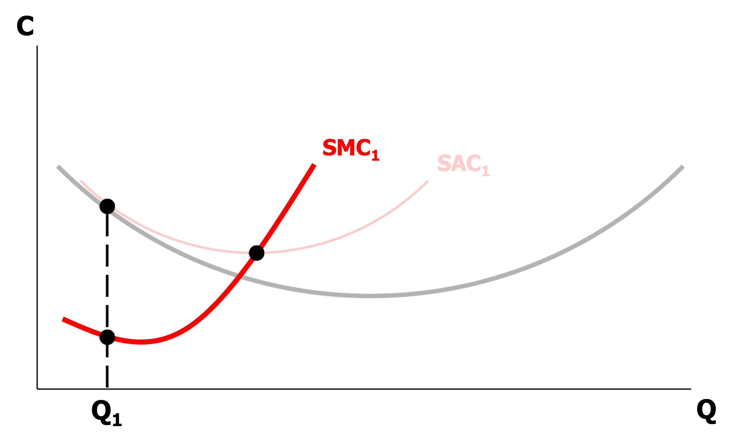 단기평균비용(Short-Term Average Cost; SAC) : 개별생산자가 재화 단위당 지불해야 하는 비용