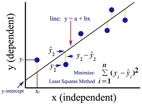 최소자승법(Ordinary Least Squares; OLS) : 잔차 자승의 합을 최소화하는 회귀계수를 추정하는 방법
