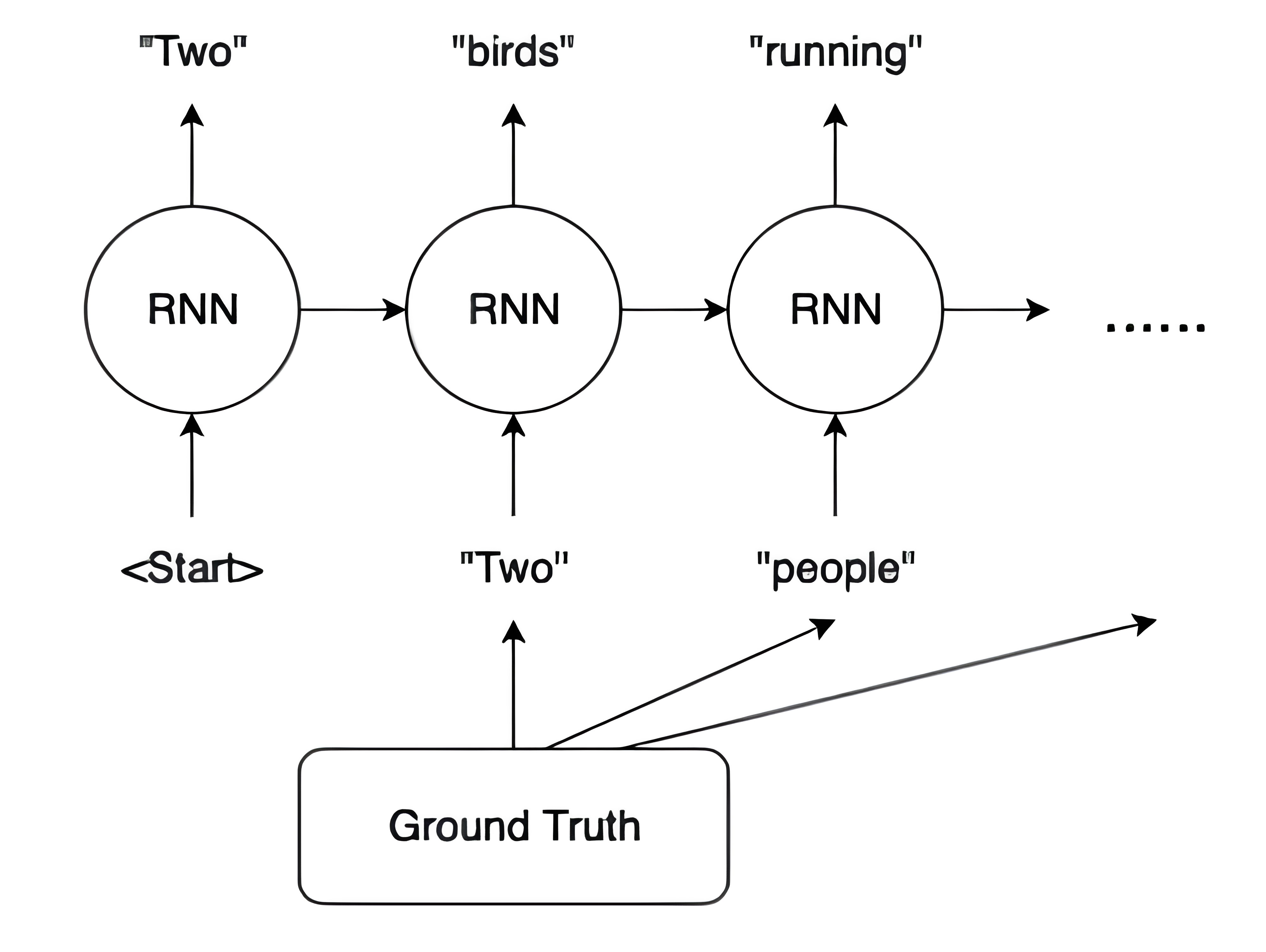 Training Phase : 정답 시퀀스 \(\mathbf{y}_{t-1}\) 를 입력값으로 사용함