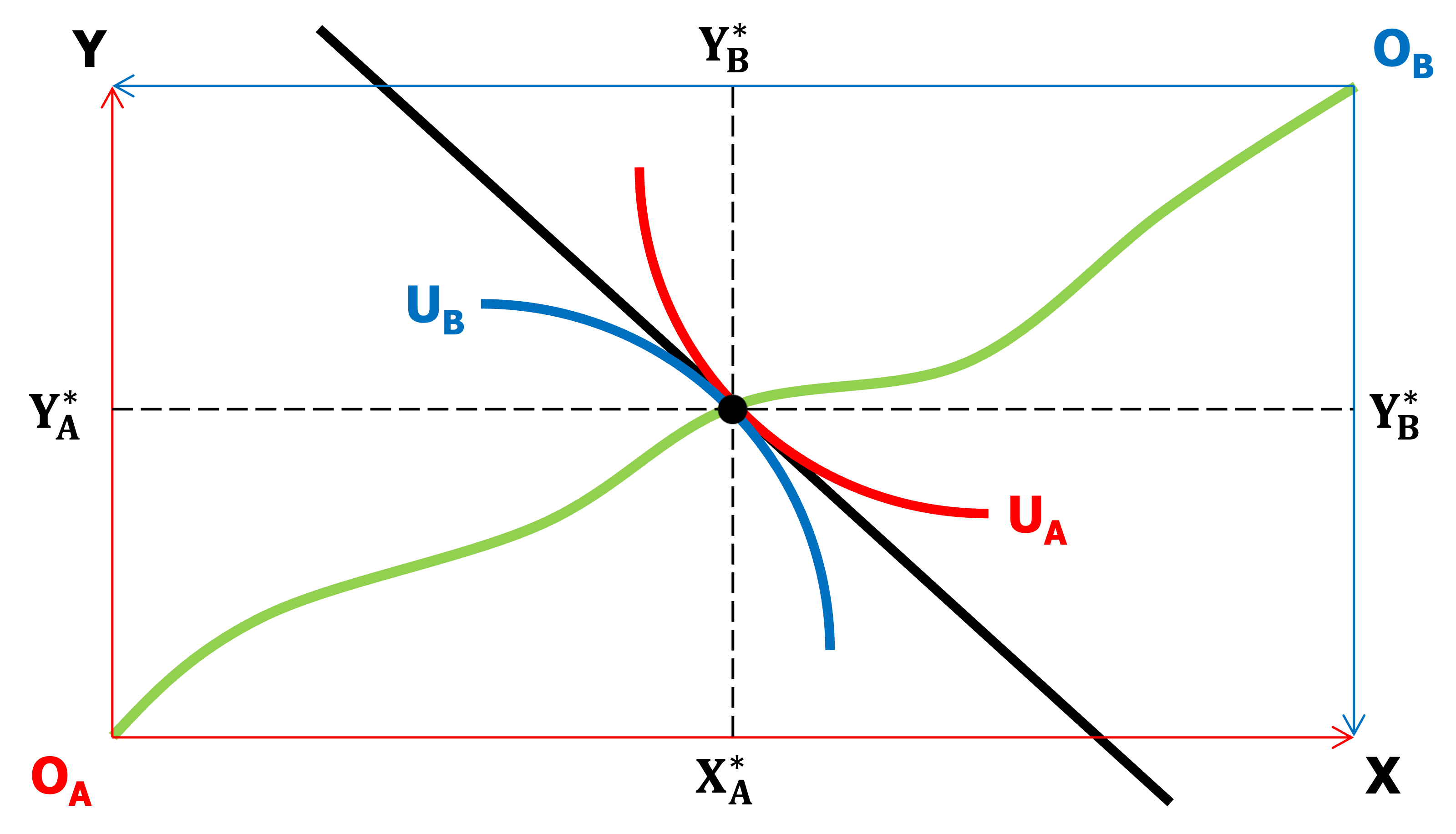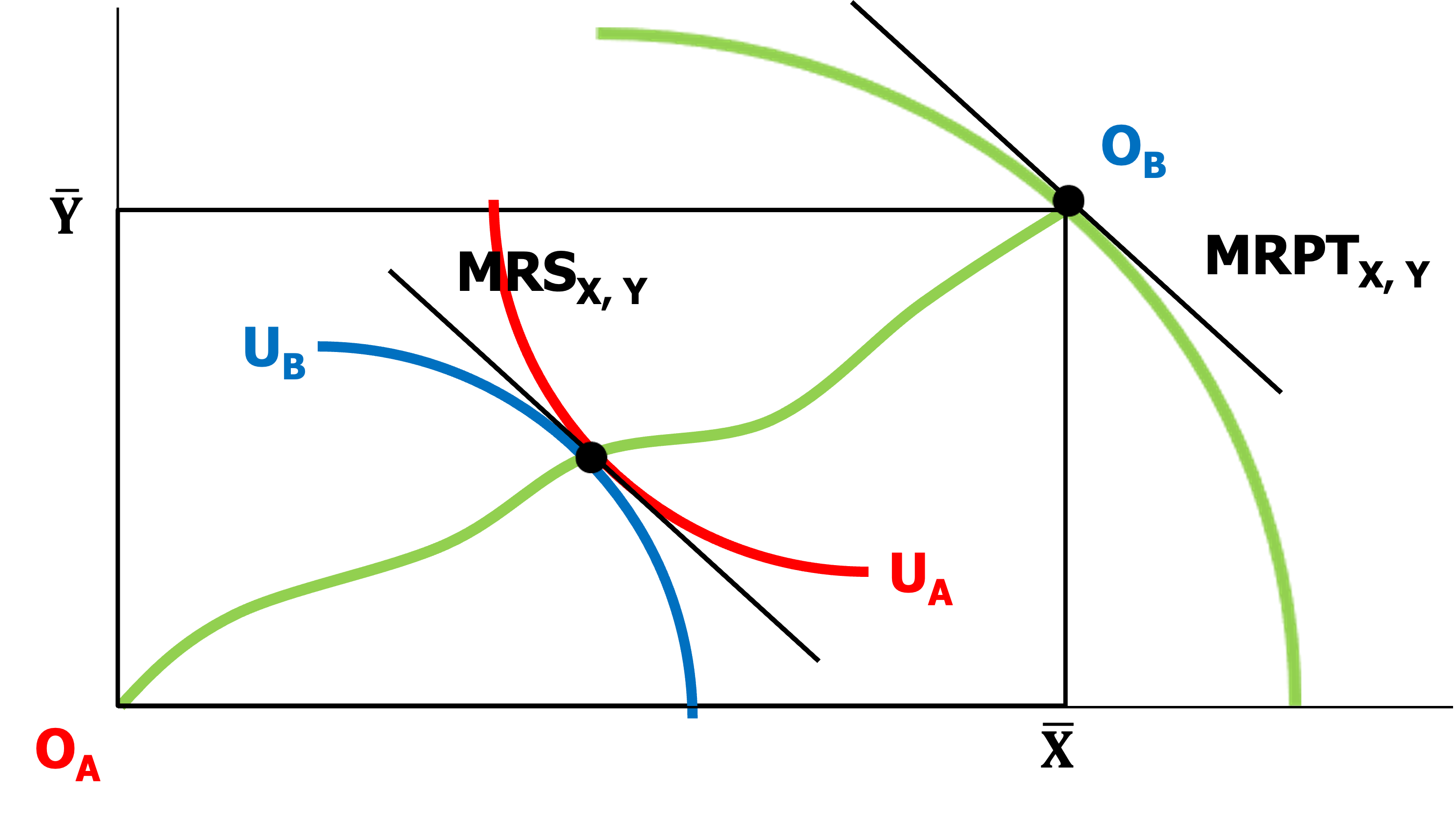 \[MRS^{(A)}_{X,Y}=\frac{P_X}{P_Y}=MRS^{(B)}_{X,Y}\] -
