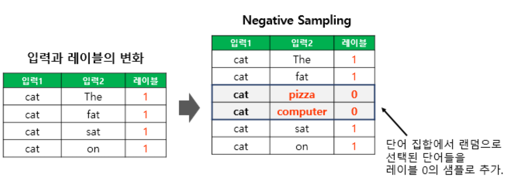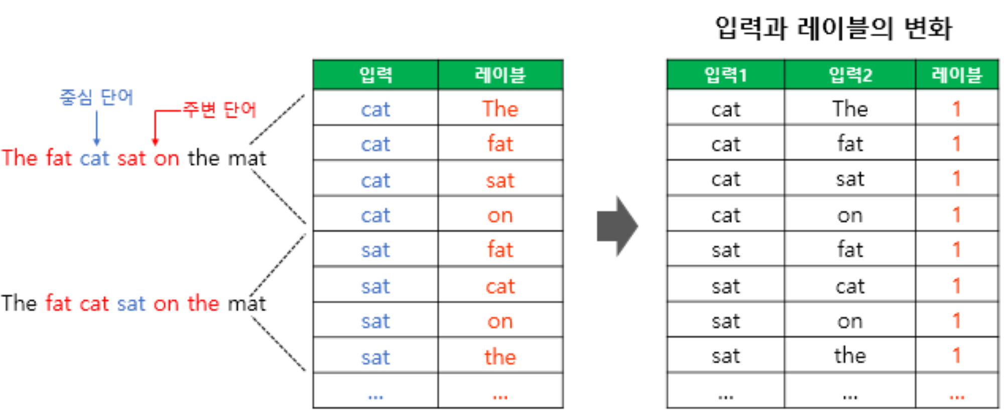이진 분류 문제로 전환하기 위한 입력과 레이블 변화